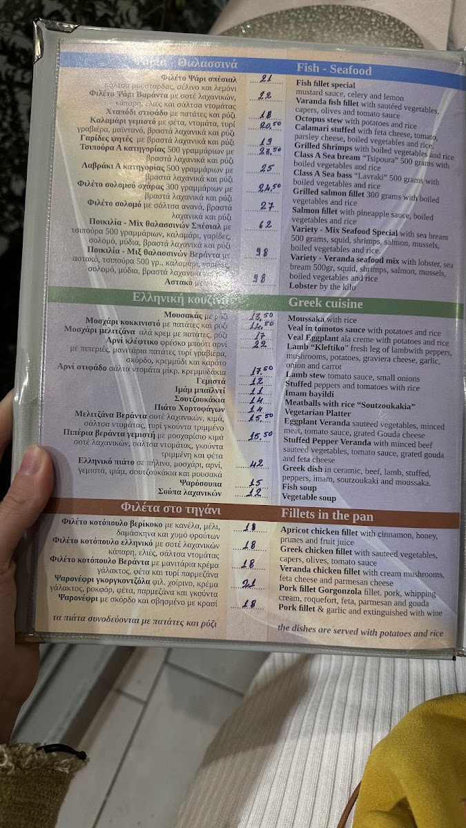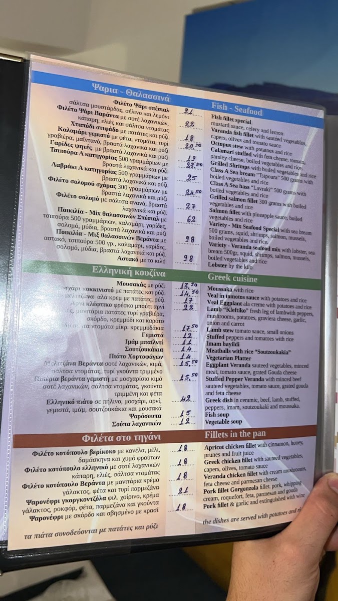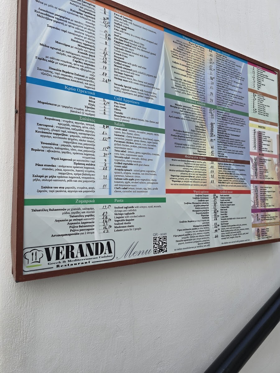 Veranda Restaurant offers a menu that reflects the relaxed, inviting atmosphere of a family-run Mediterranean eatery. The selection is centered on traditional Greek and Mediterranean dishes, designed to be enjoyed throughout the day, from leisurely lunches to relaxed dinners.